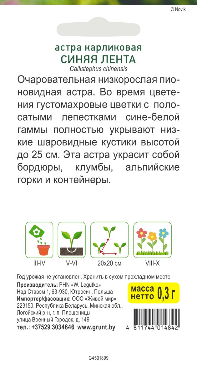 Астра Синяя лента карликовая (W. Legutko) 0,3 г, РБ