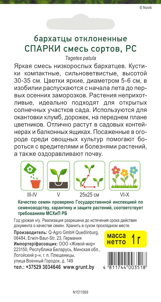 Бархатцы откл. Спарки смесь сортов (Q-Agro) 1 г, РБ
