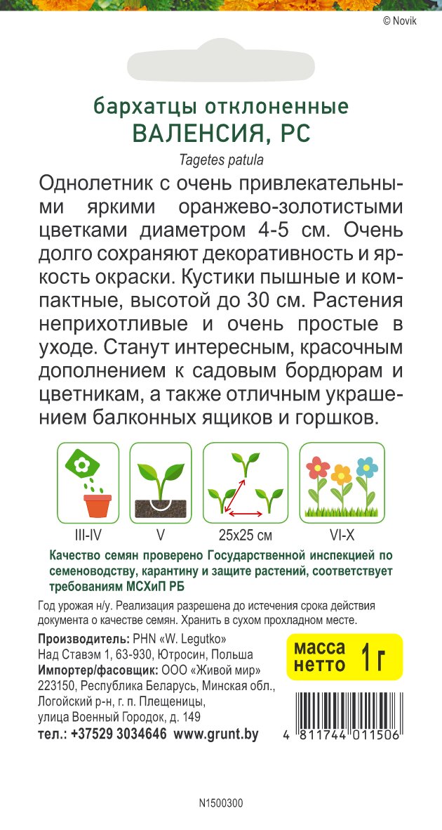 Бархатцы откл. Валенсия (W. Legutko) 1 г, РБ