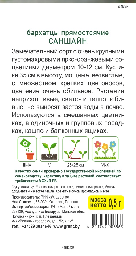 Бархатцы пр. Саншайн (W. Legutko) 0,5 г, РБ