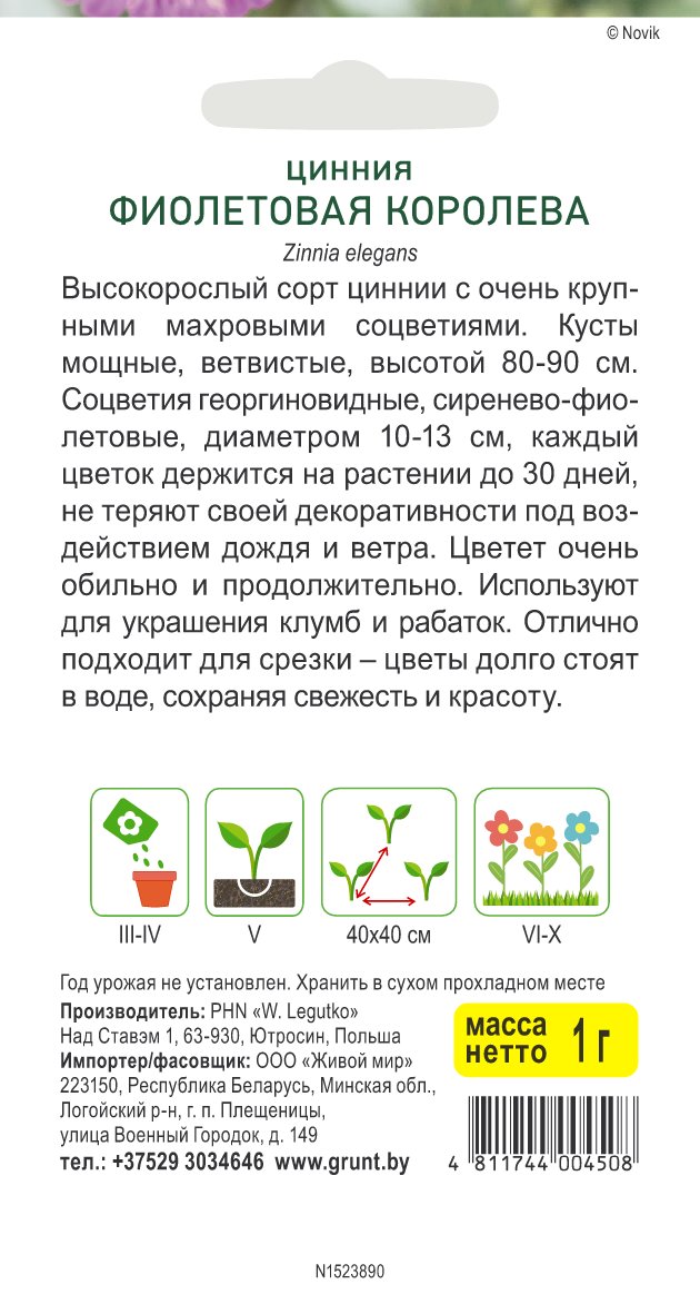 Цинния Фиолетовая королева (W. Legutko) 1 г, РБ