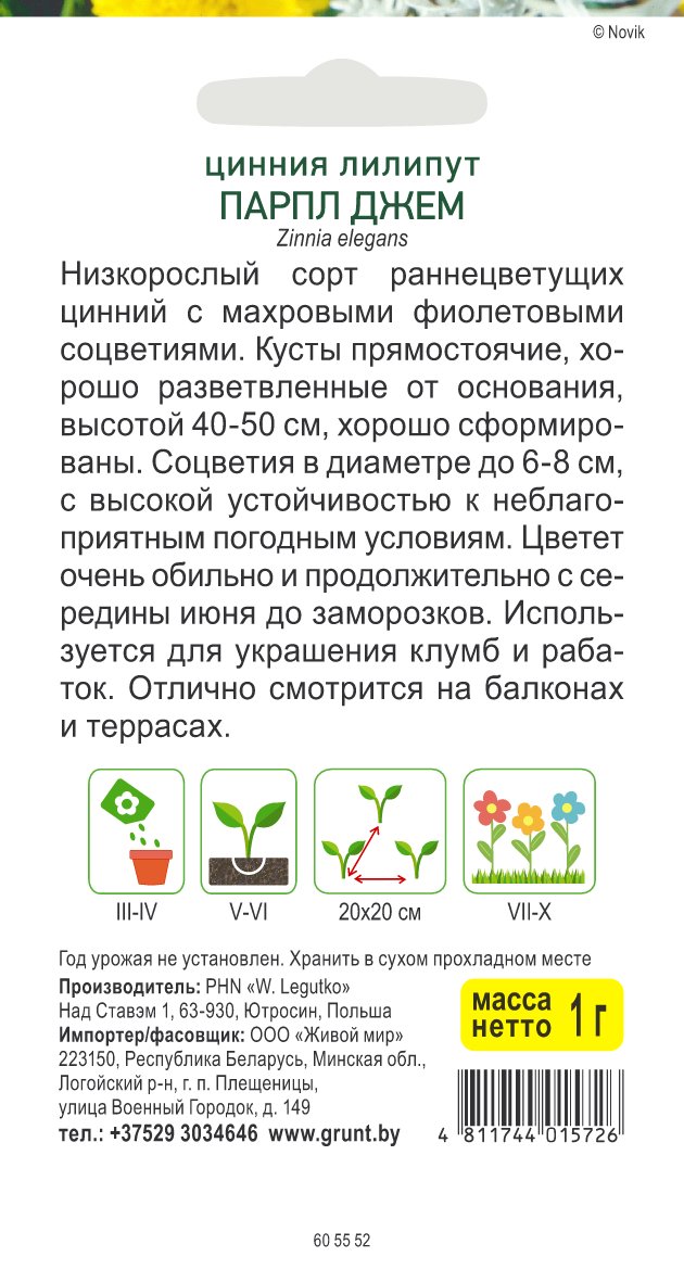 Цинния Лилипут Парпл Джем (W. Legutko) 1 г, РБ