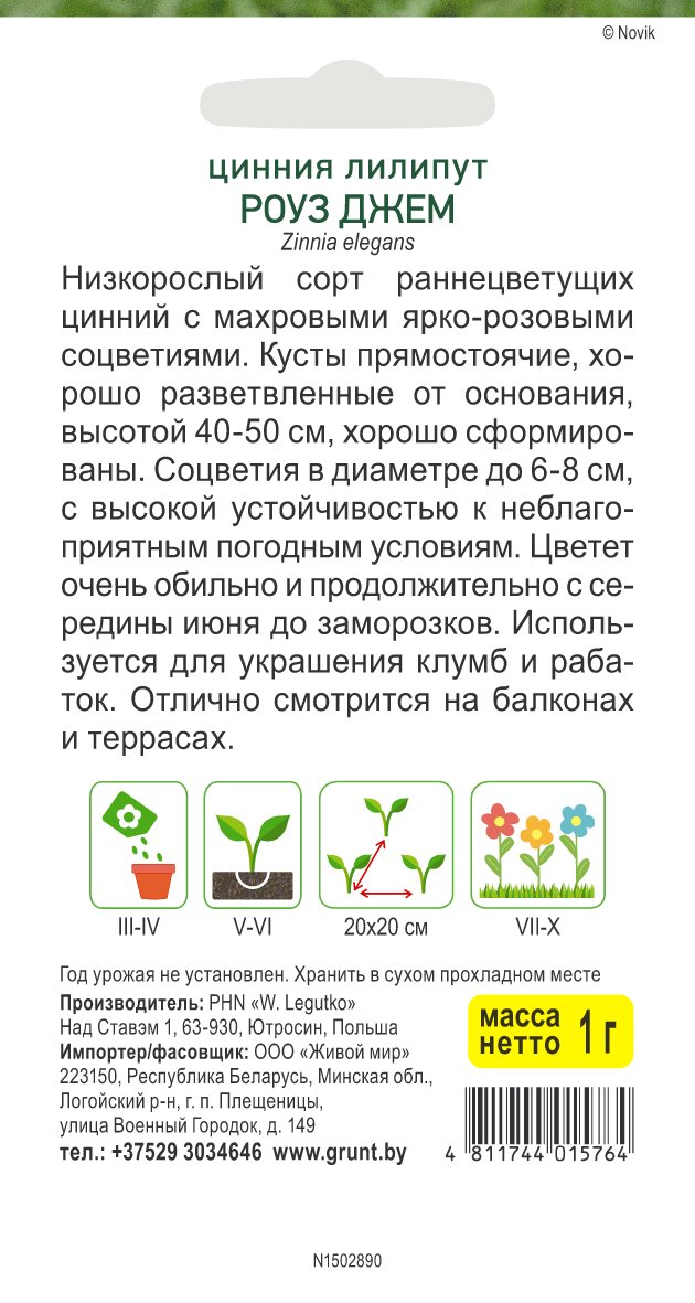Цинния Лилипут Роуз Джем (W. Legutko) 1 г, РБ