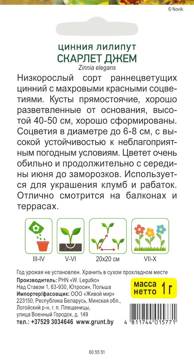 Цинния Лилипут Скарлет Джем (W. Legutko) 1 г, РБ
