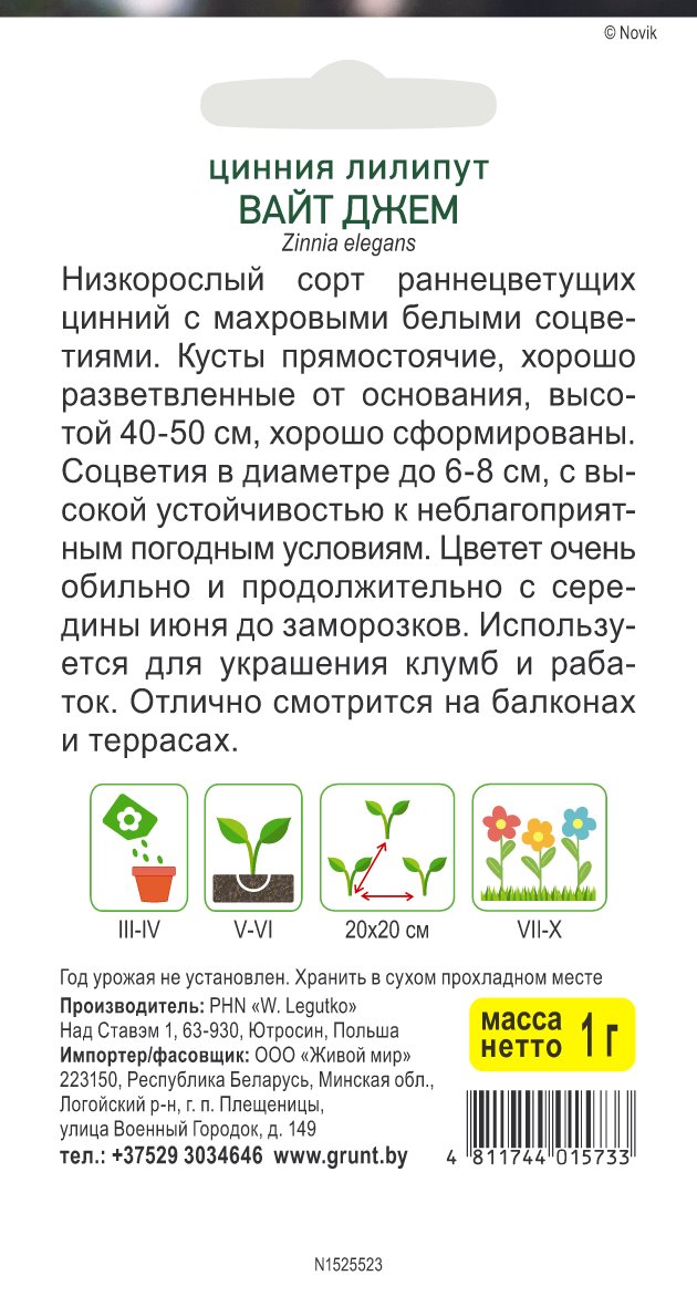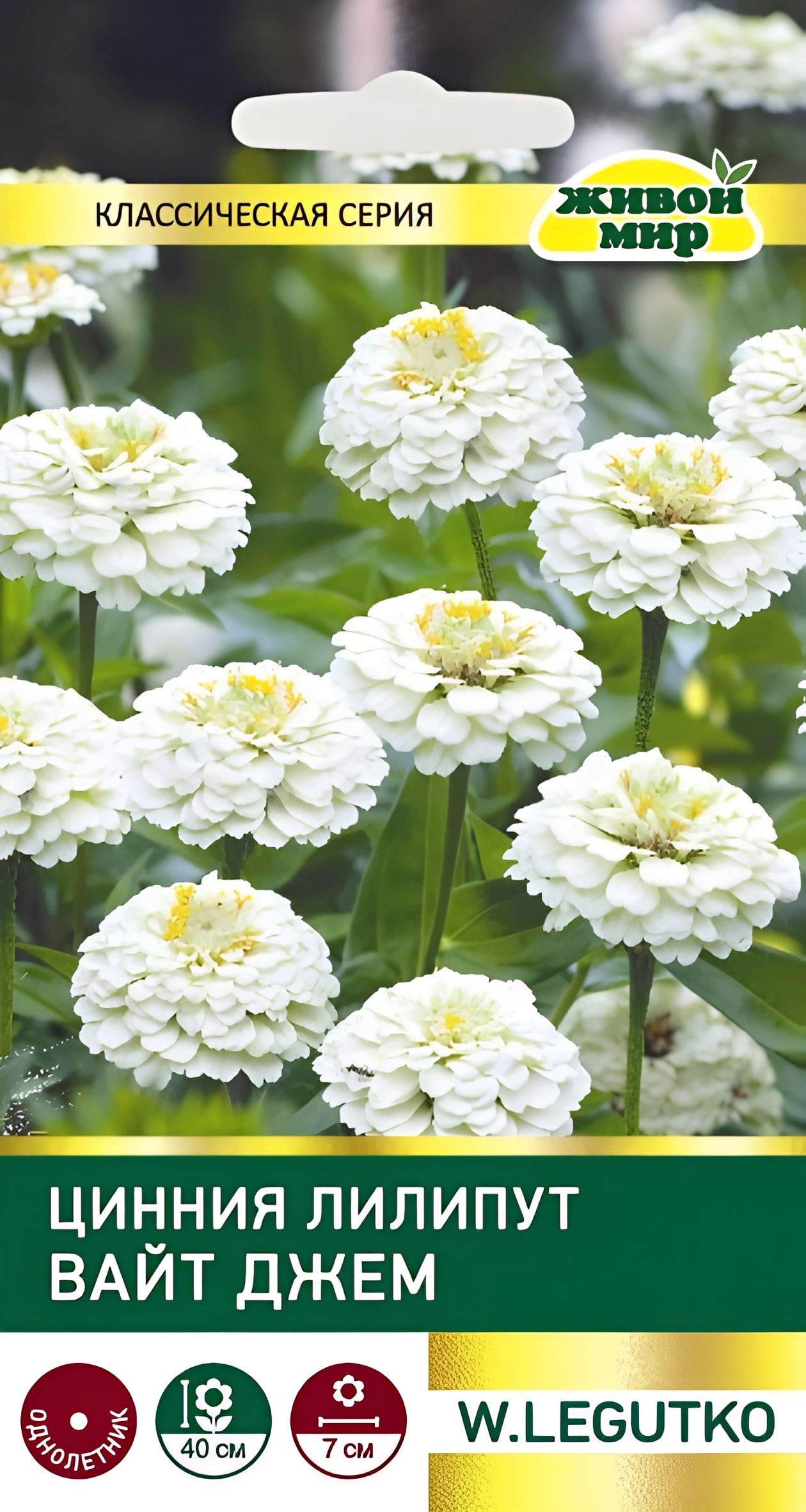 Цинния Лилипут Вайт Джем (W. Legutko) 1 г, РБ