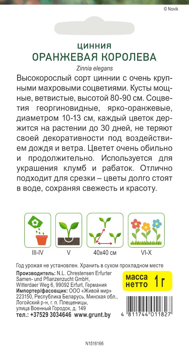Цинния Оранжевая королева (N.L.Chrestensen) 1 г, РБ