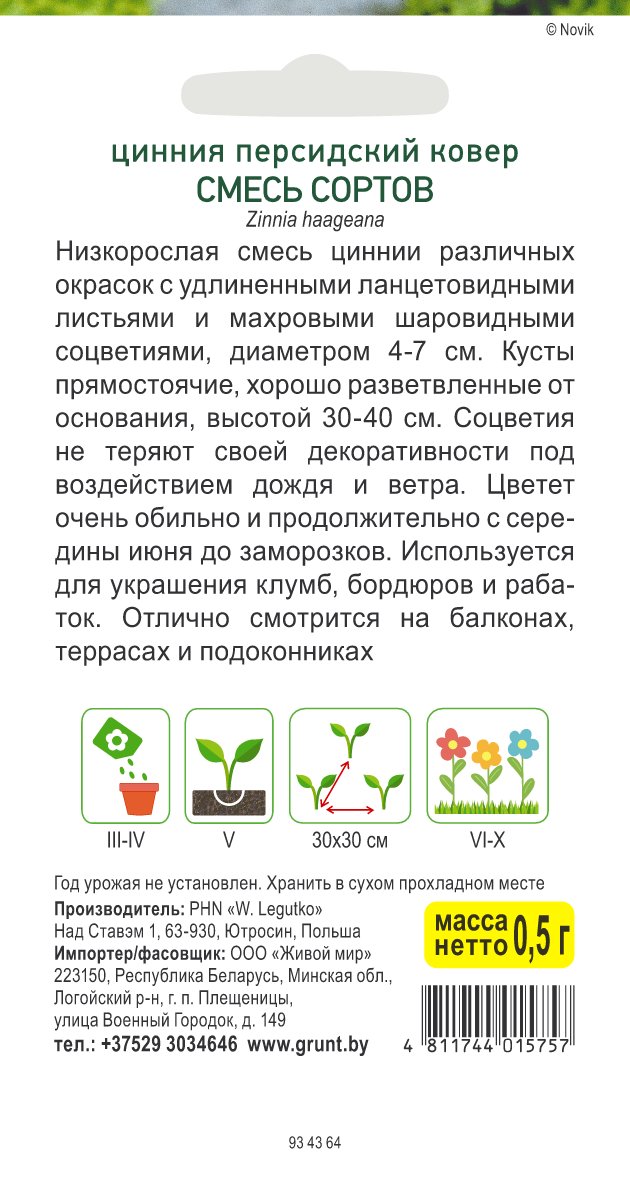 Цинния Персидский ковер смесь сортов (W. Legutko) 0,5 г, РБ