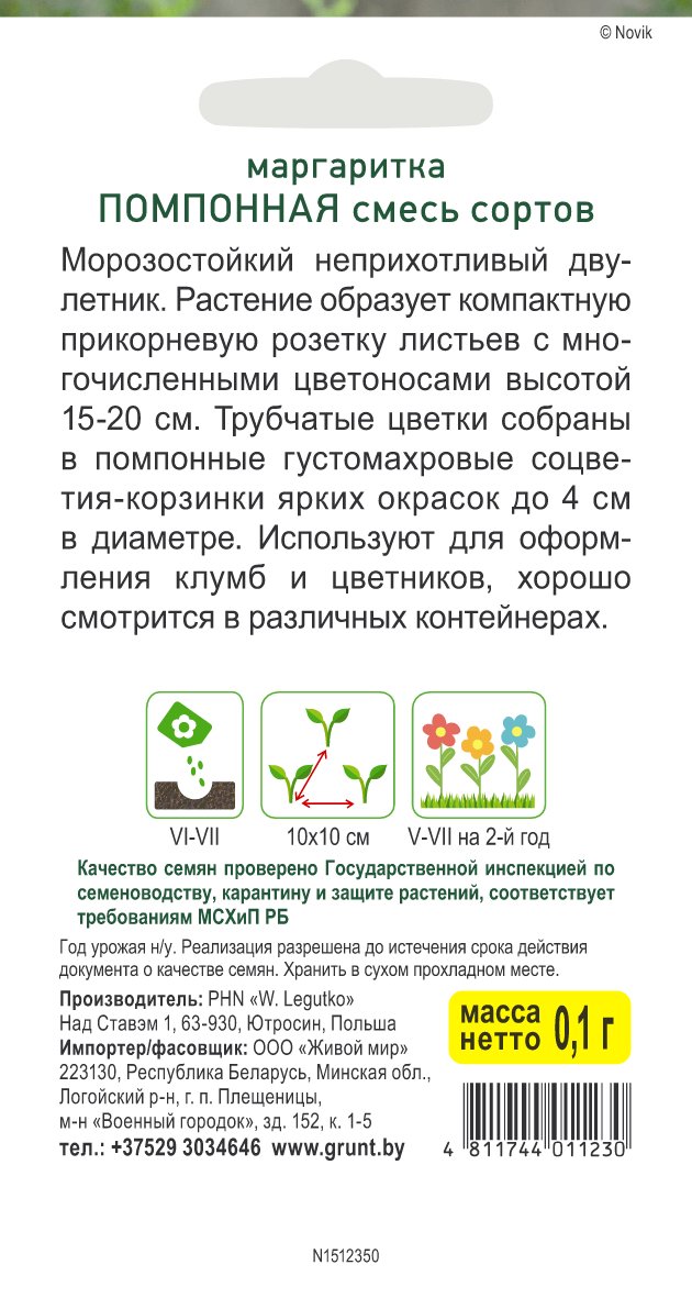 Маргаритка Помпонная смесь сортов (W. Legutko) 0,1 г, РБ