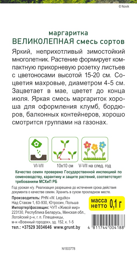 Маргаритка Великолепная смесь сортов (W. Legutko) 0,1 г, РБ