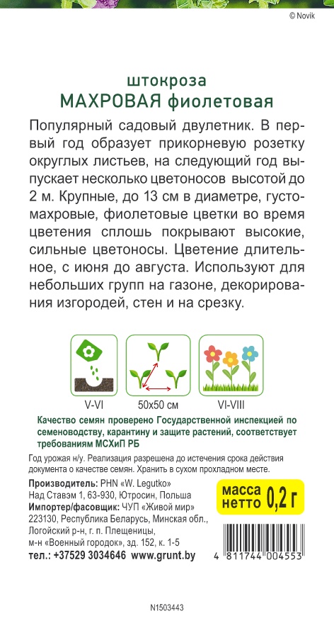 Штокроза махровая Фиолетовая (W. Legutko) 0,2 г, РБ