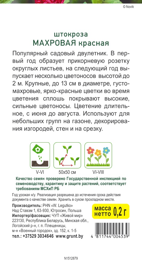Штокроза махровая Красная (W. Legutko) 0,2 г, РБ