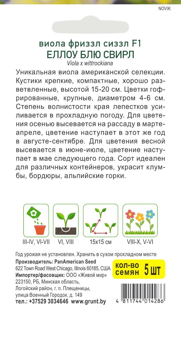 Виола Фриззл Сиззл F1 Еллоу Блю Свирл (PanAmerican Seed) 5 шт, РБ