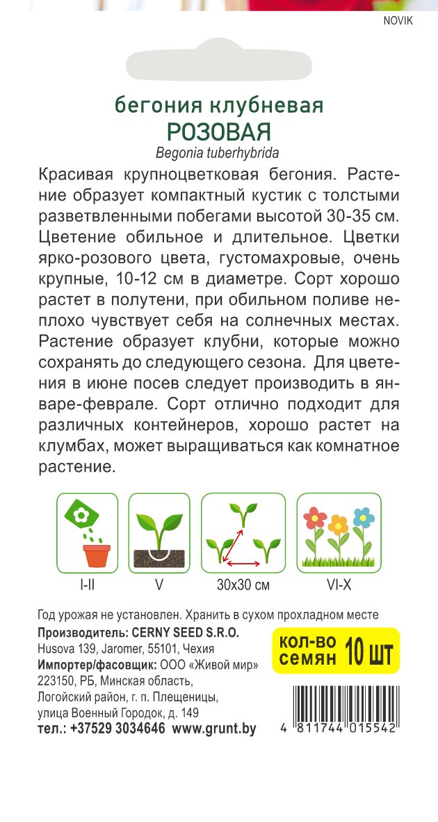 Бегония клубневая Розовая (Cerny seed) 10 шт, РБ