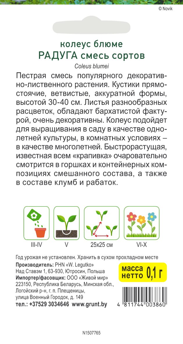 Колеус блюме Радуга смесь сортов (W. Legutko) 0,1 г, РБ