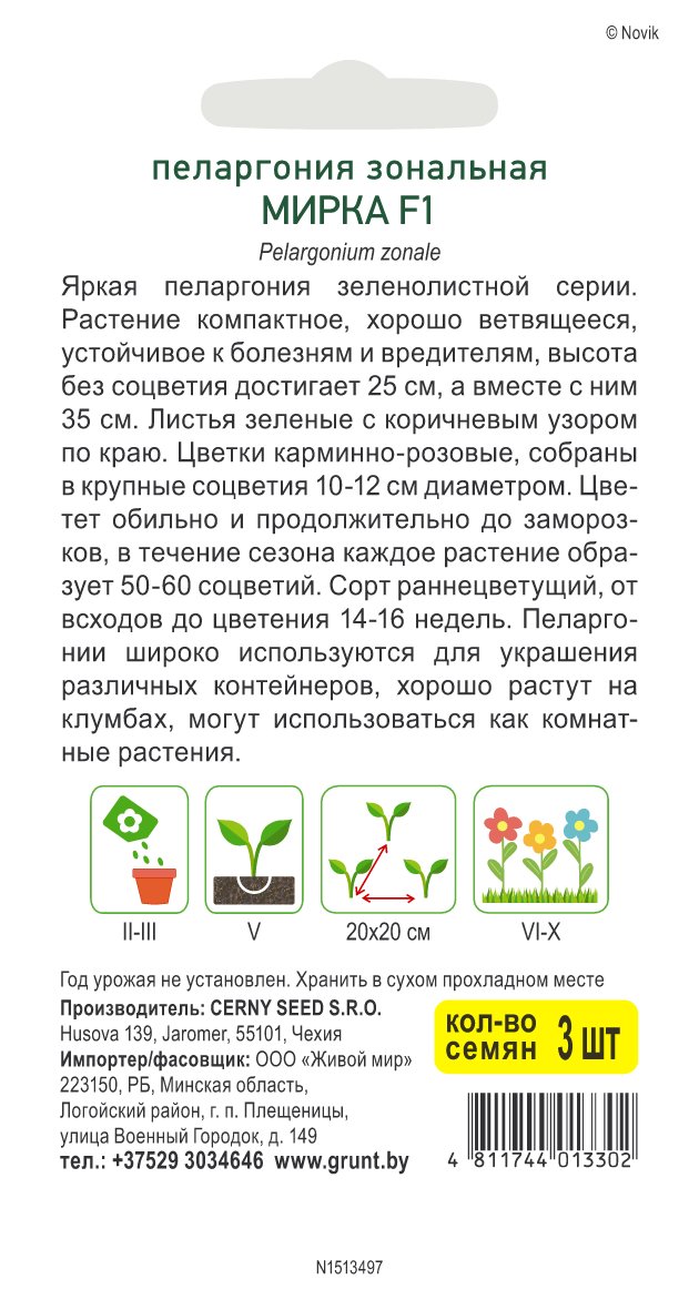 Пеларгония зональная Мирка F1 (Cerny seed) 3 шт, РБ