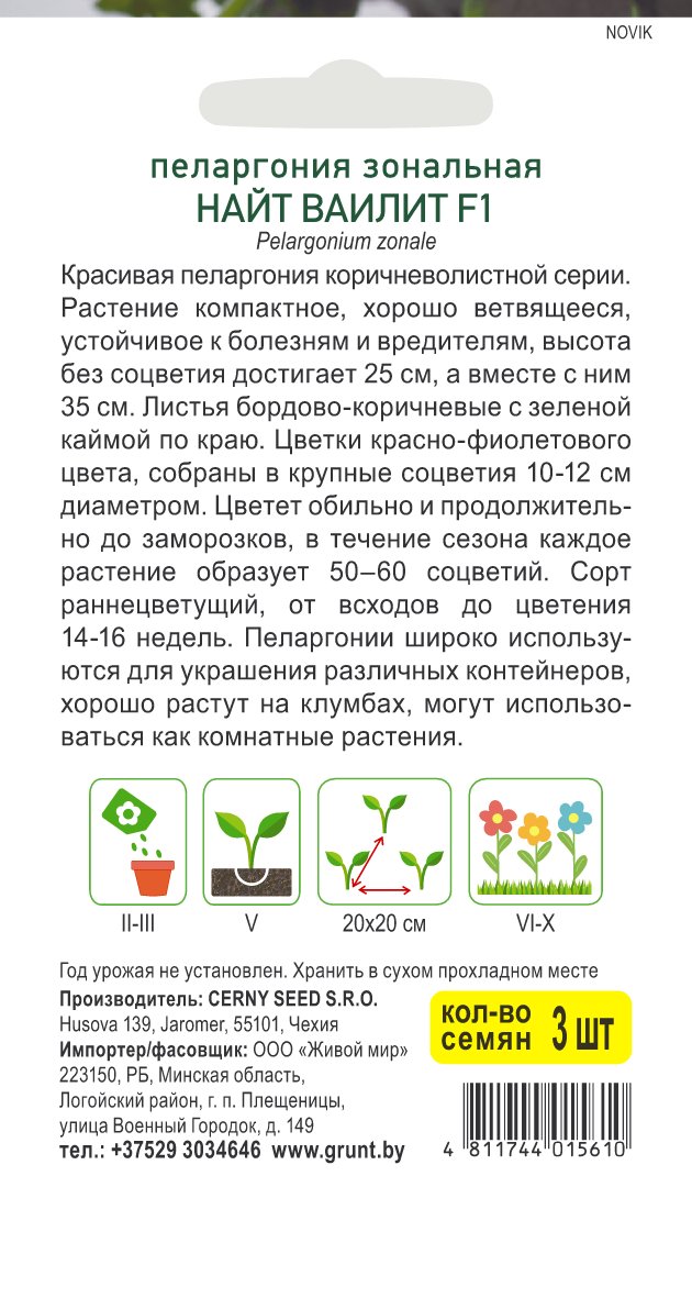 Пеларгония зональная Найт Ваилит F1 (Cerny seed) 3 шт, РБ