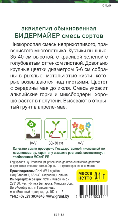 Аквилегия обыкновенная Бидермайер смесь сортов (W. Legutko) 0,1 г, РБ