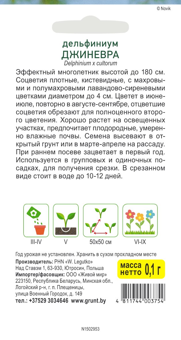 Дельфиниум Джиневра (W. Legutko) 0,1 г, РБ