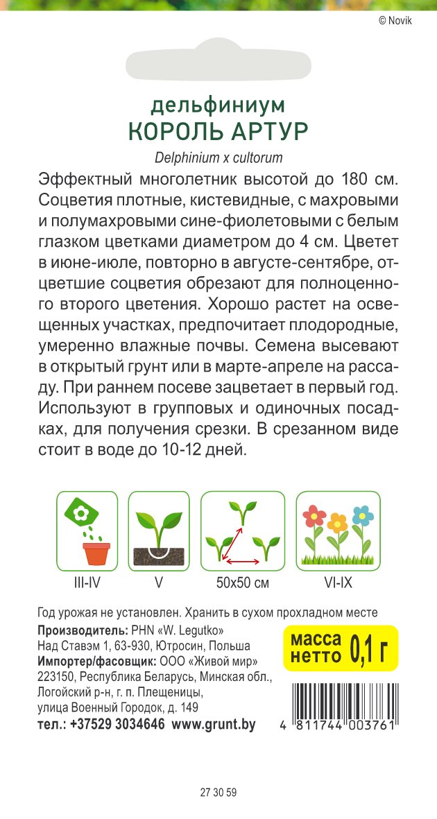 Дельфиниум Король Артур (W. Legutko) 0,1 г, РБ