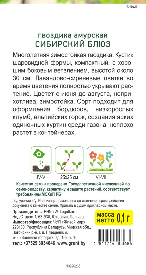 Гвоздика амурская Сибирский блюз (W. Legutko) 0,1 г, РБ