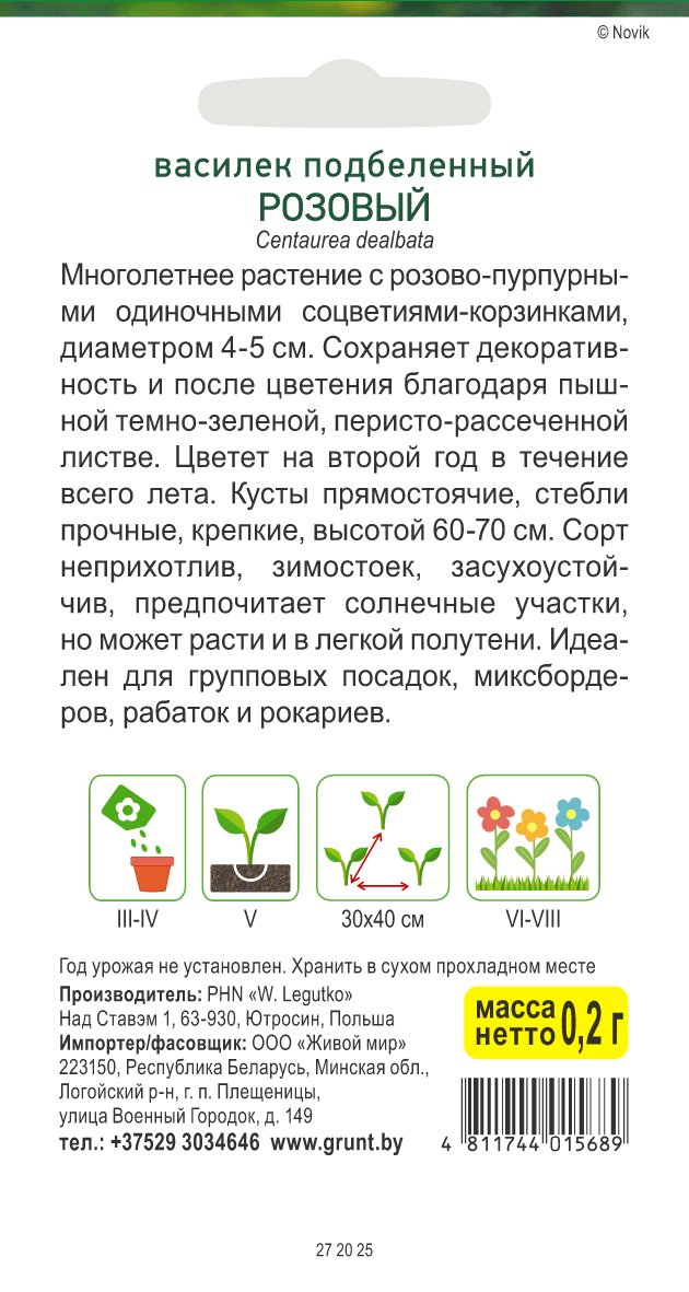 Василек подбеленный Розовый (W. Legutko) 0,2 г, РБ