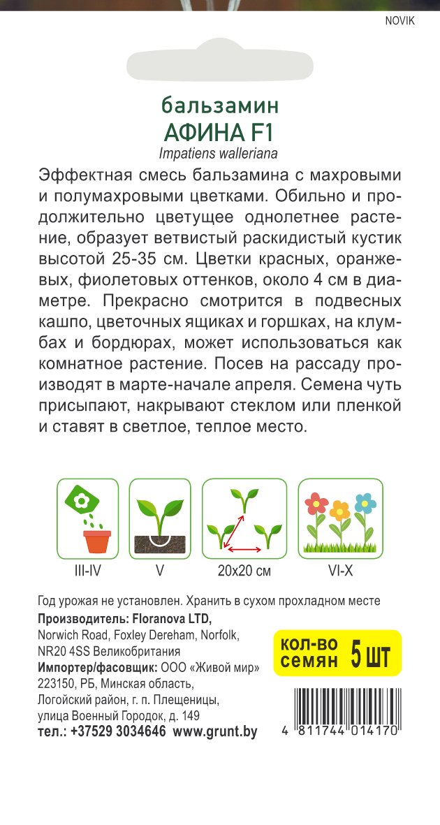 Бальзамин Афина F1 (Floranova) 5 шт, РБ