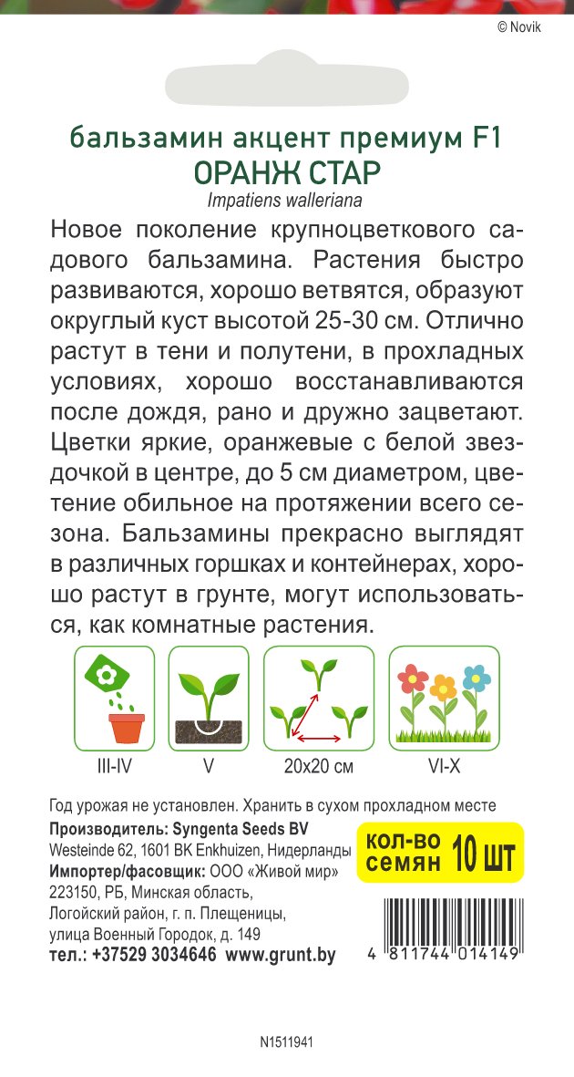 Бальзамин Акцент Премиум F1 Оранж Стар (Syngenta) 10 шт, РБ