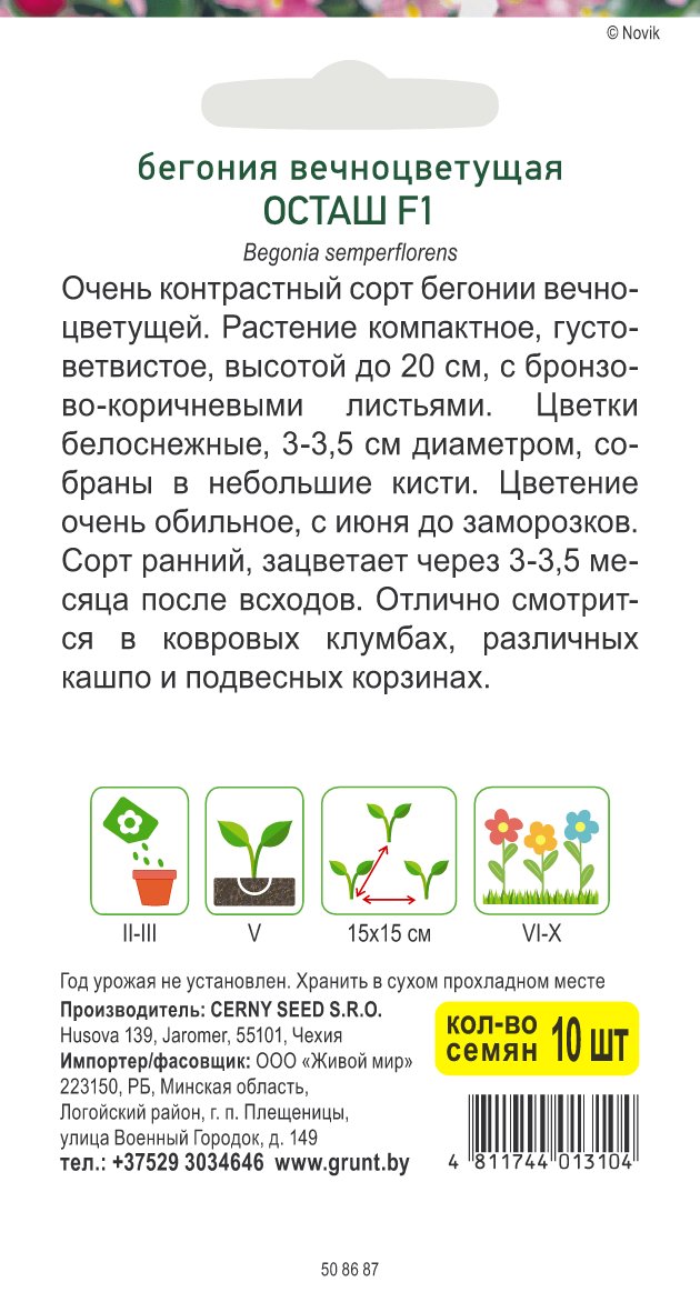 Бегония вечноцветущая Осташ F1 (Cerny seed) 10 шт, РБ
