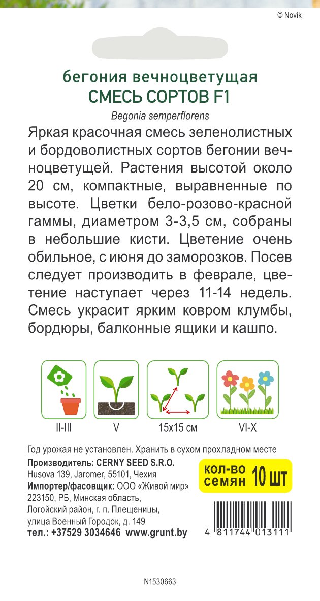Бегония вечноцветущая Смесь сортов F1 (Cerny seed) 10 шт, РБ