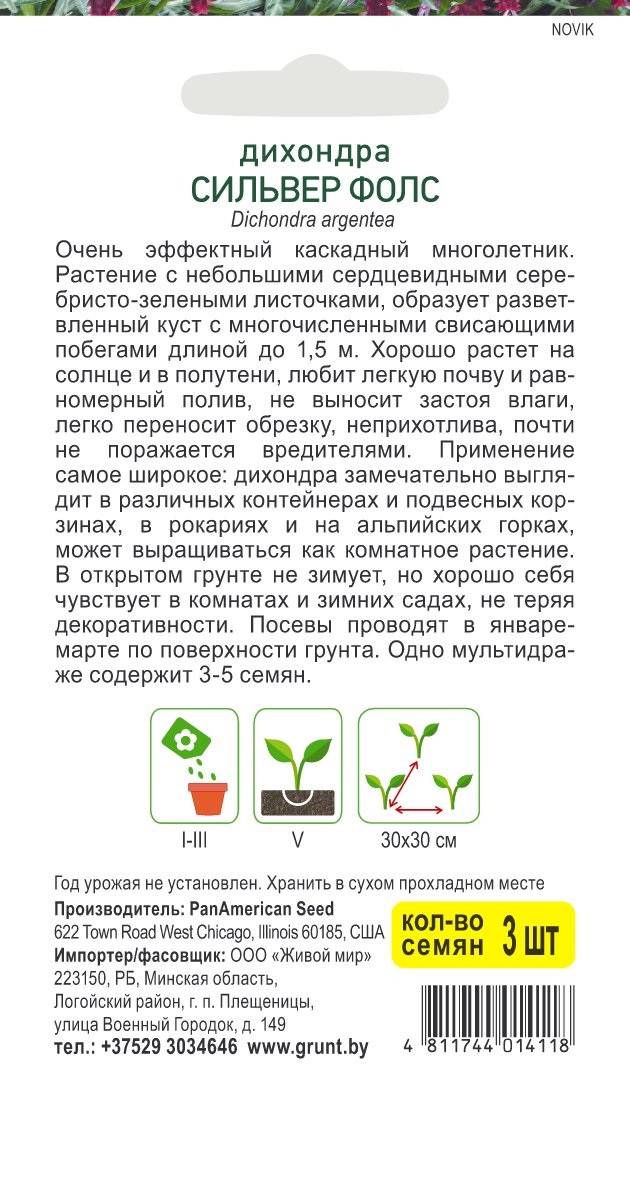 Дихондра Сильвер Фолс (PanAmerican Seed) 3 шт, РБ