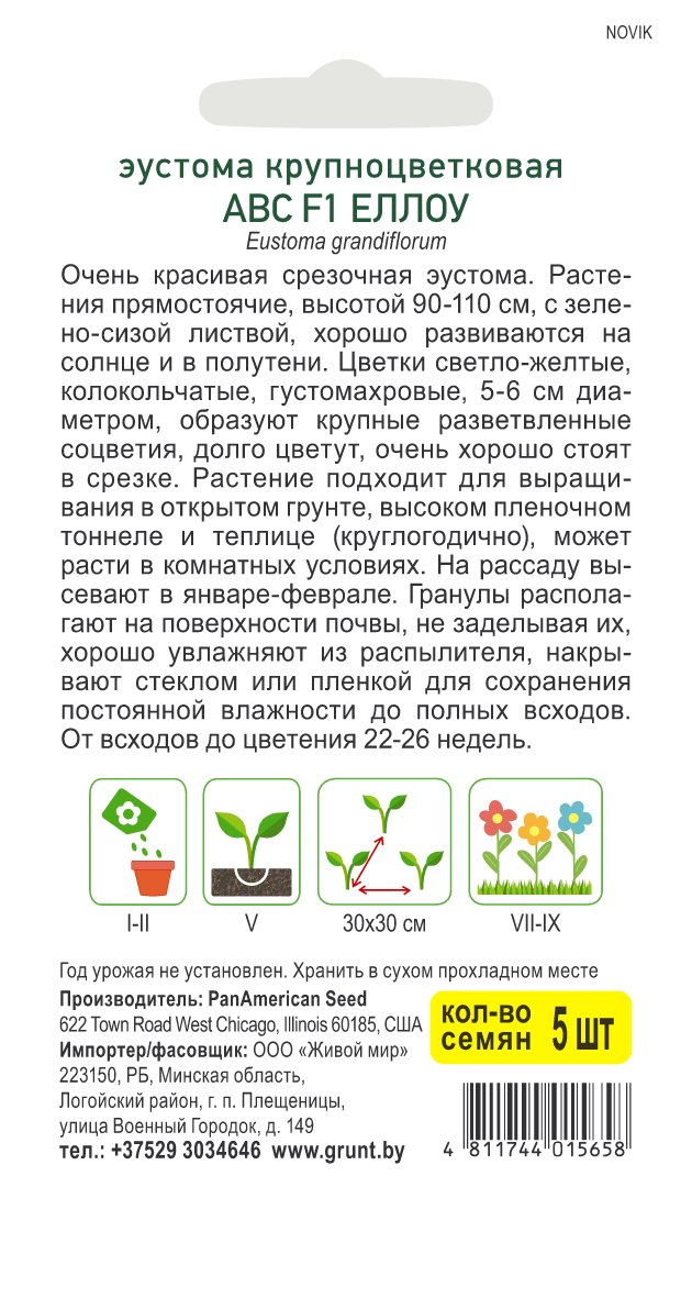 Эустома АВС Еллоу (PanAmerican Seed) 5 шт, РБ