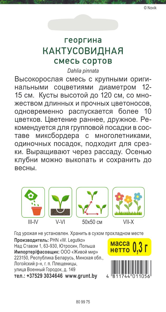 Георгина Кактусовидная смесь сортов (W. Legutko) 0,3 г, РБ