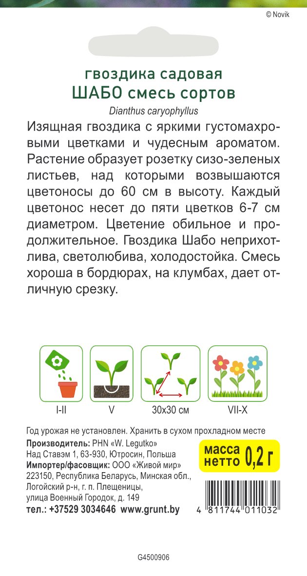 Гвоздика садовая Шабо смесь (W. Legutko) 0,2 г, РБ
