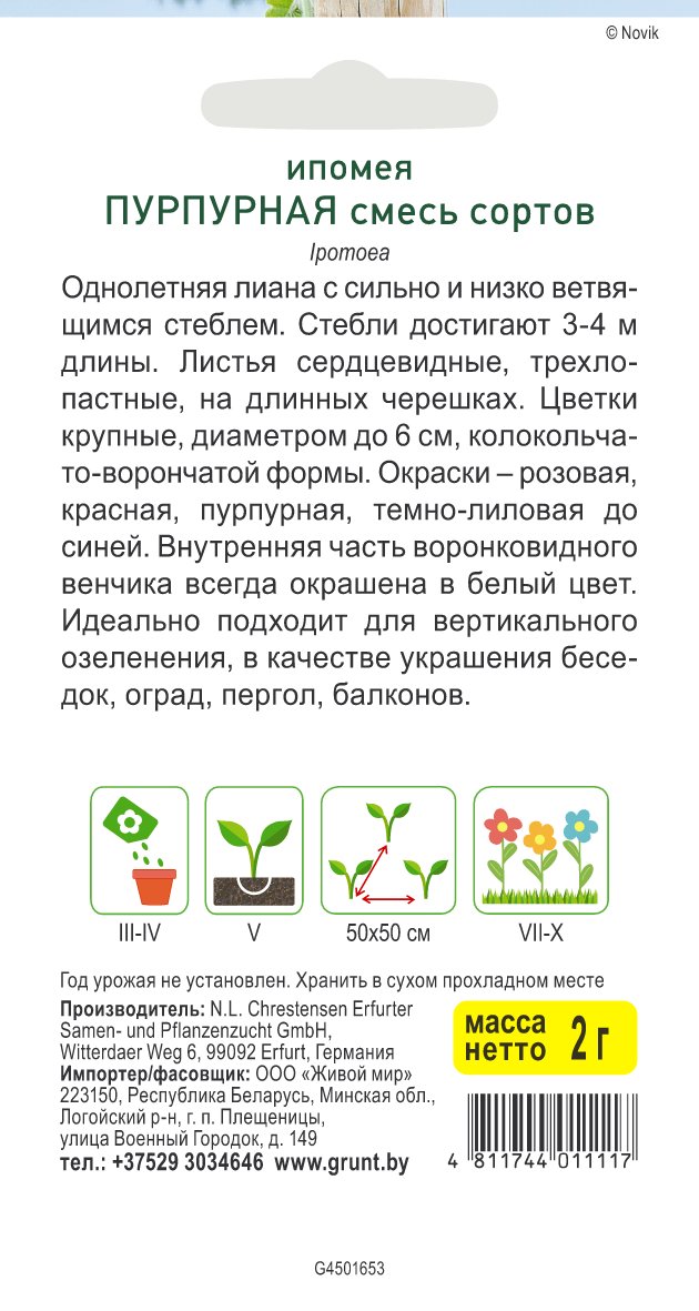 Ипомея пурпурная смесь сортов (N.L.Chrestensen) 2 г, РБ