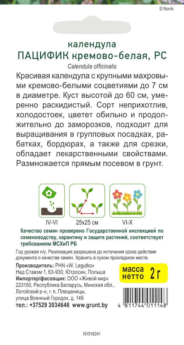 Календула Пацифик Кремово-белая (W. Legutko) 2 г, РБ