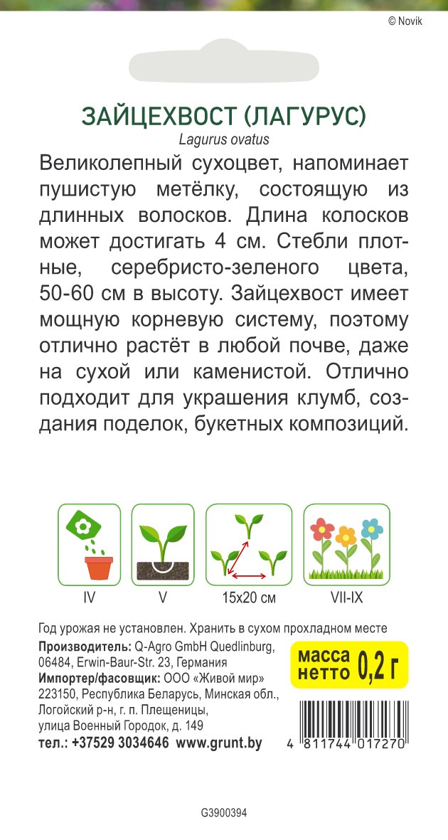 Лагурус яйцевидный (Зайцехвост) (Q-Agro) 0,2 г, РБ