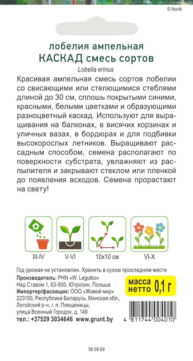 Лобелия ампельная Каскад смесь сортов (W. Legutko) 0,1 г, РБ