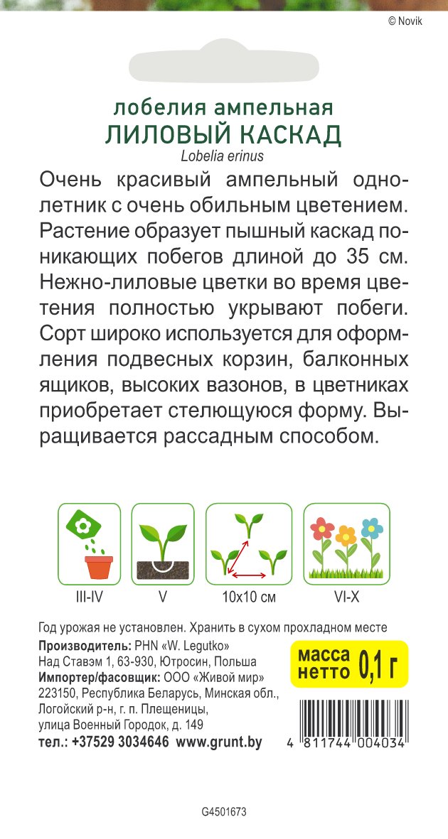 Лобелия ампельная Лиловый каскад (W. Legutko) 0,1 г, РБ