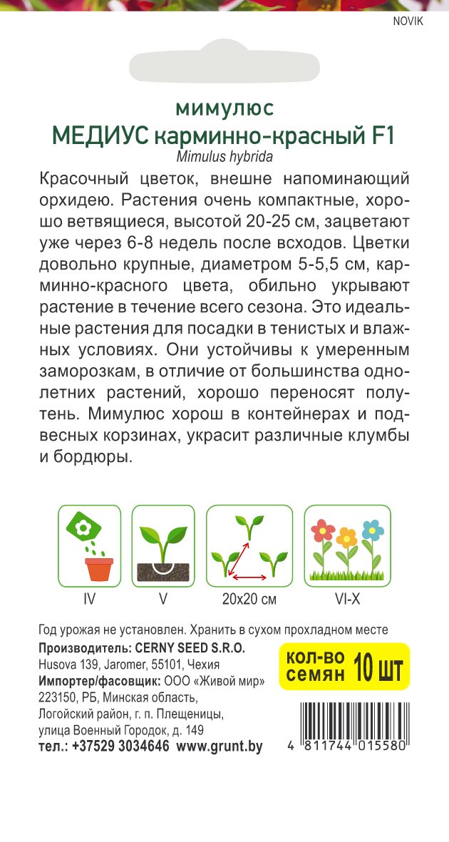 Мимулюс гибридный Медиус Карминно-красный F1 (Cerny seed) 10 шт, РБ