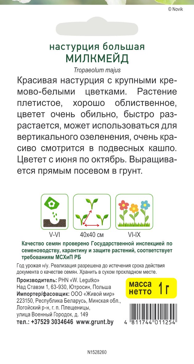 Настурция большая Милкмейд (W. Legutko) 1 г, РБ