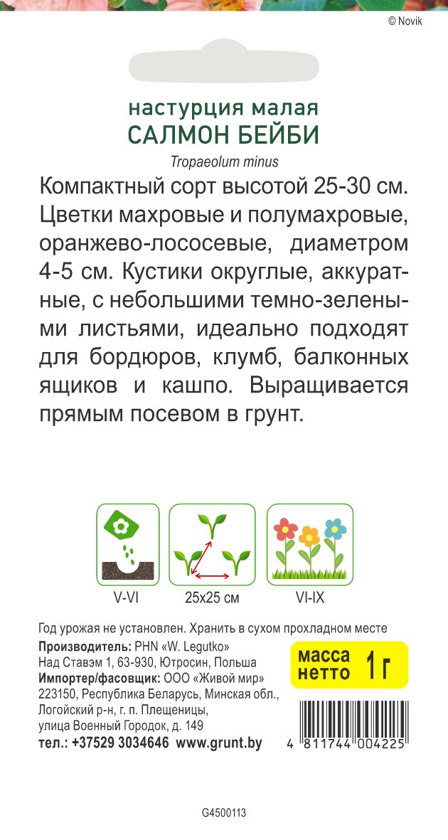 Настурция малая Салмон Бейби (W. Legutko) 1 г, РБ