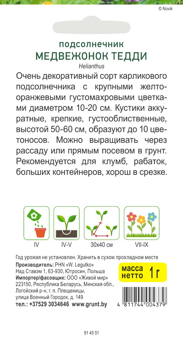 Подсолнечник Медвежонок Тедди (W. Legutko) 1 г, РБ