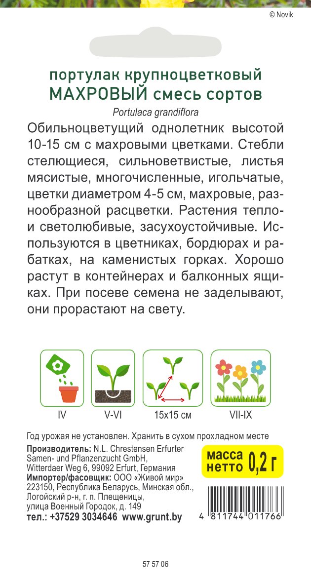 Портулак крупноцветковый Махровая смесь (N.L.Chrestensen) 0,2 г, РБ