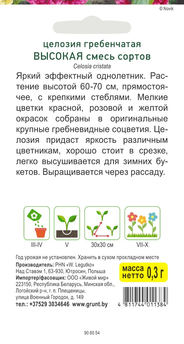Целозия гребенчатая Высокая смесь сортов (W. Legutko) 0,3 г, РБ