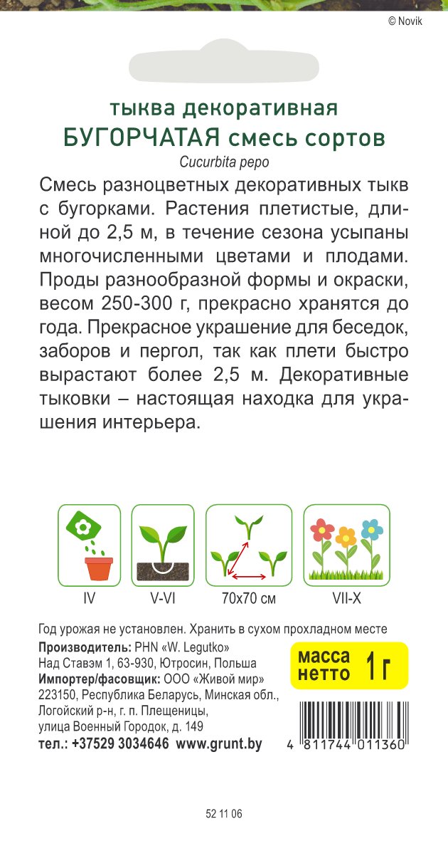 Тыква декоративная Бугорчатая смесь сортов (W. Legutko) 1 г, РБ