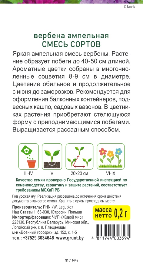 Вербена ампельная смесь сортов (W. Legutko) 0,2 г, РБ