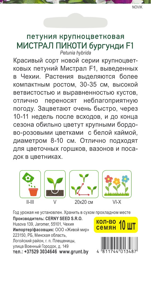 Петуния крупноцветковая Мистрал Пикоти Бургунди F1 (Cerny seed) 10 шт, РБ