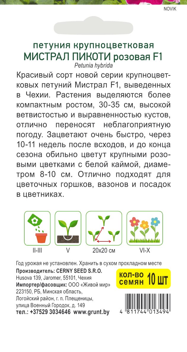 Петуния крупноцветковая Мистрал Пикоти Розовая F1 (Cerny seed) 10 шт, РБ