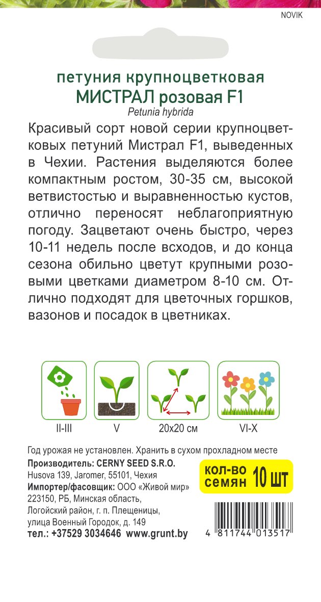 Петуния крупноцветковая Мистрал Розовая F1 (Cerny seed) 10 шт, РБ