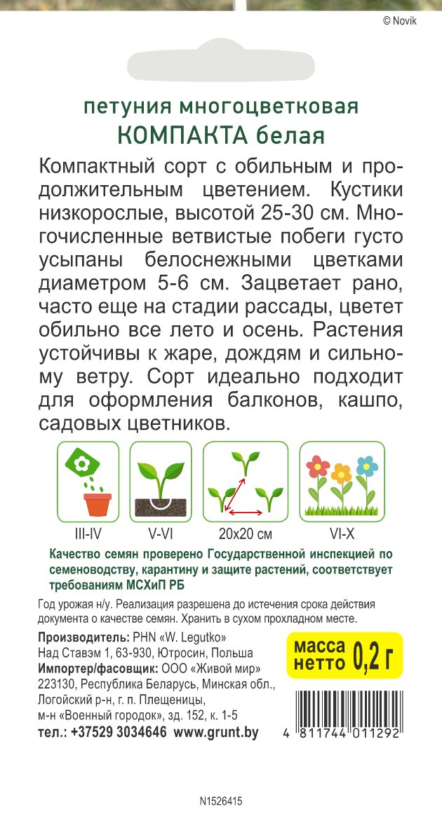 Петуния многоцветковая Компакта белая (W. Legutko) 0,2 г, РБ